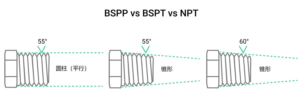 NPT与BSPT:因牙型角(60° vs 55°)和螺距差异,强行混用会导致螺纹咬合失效和泄漏!